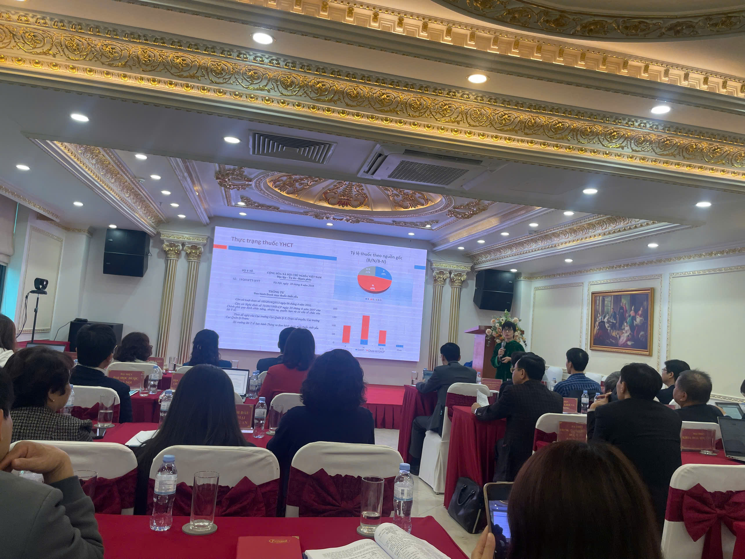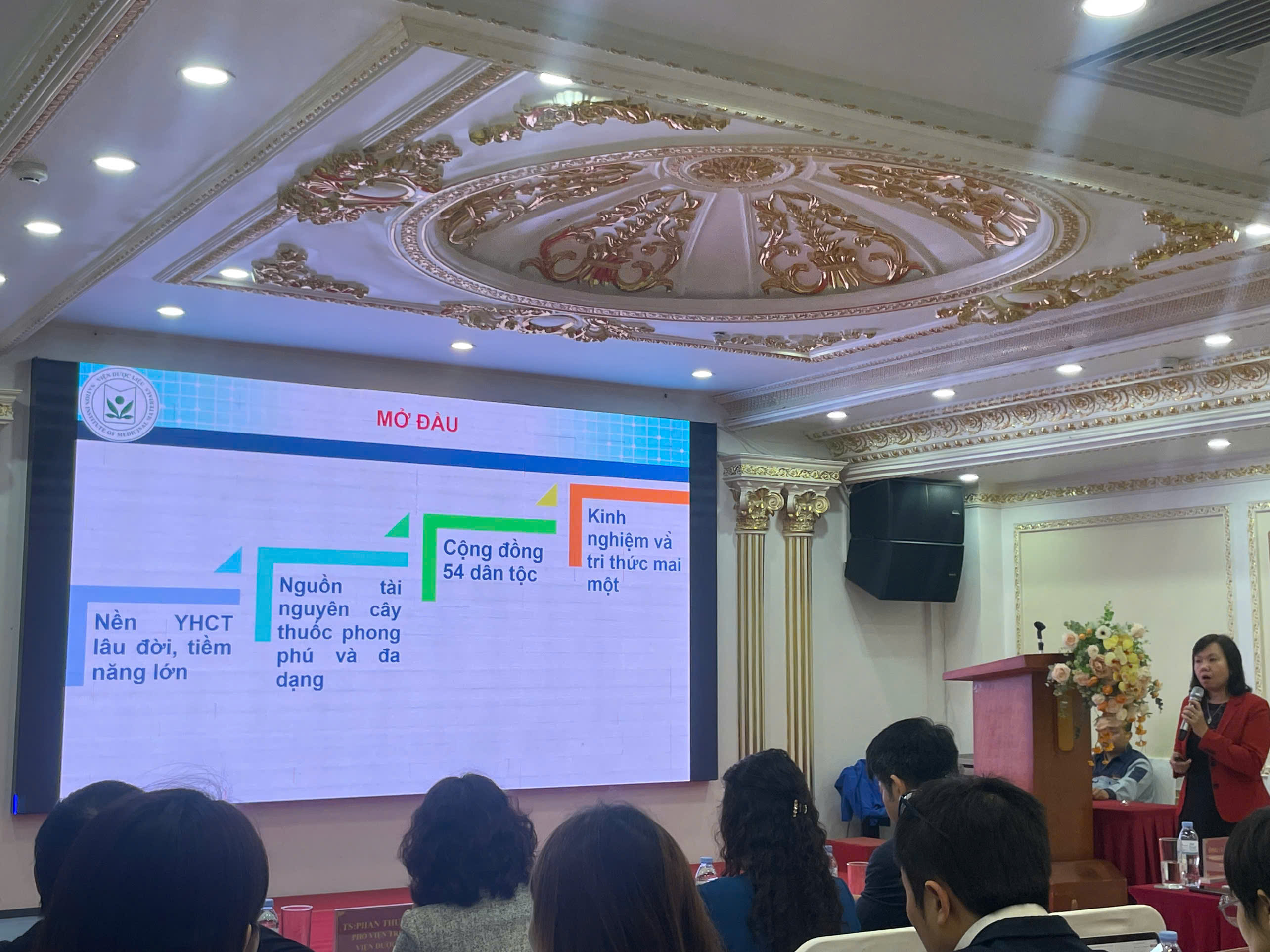TS. Phan Thúy Hiền – Phó Viện trưởng đã chủ trì phiên Tham luận và Tọa đàm. Phát biểu đề dẫn mở đầu, đồng chí Phan Thúy Hiền đã nhấn mạnh tầm quan trọng của công tác Bảo tồn và gìn giữ tri thức các bài thuốc cổ truyền. Tầm quan trọng đó đã được chứng minh qua Báo cáo “Bảo tồn cây thuốc cổ truyền và tri thức bản địa giai đoạn 2021-2025 và định hướng giai đoạn 2025-2030” của Viện Dược liệu. Việt Nam có nền Y học cổ truyền lâu đời, là một trong những di sản quý báu của dân tộc, nền Y học cổ truyền là tiềm năng lớn và đóng vai trò quan trọng trong công tác bảo vệ sức khỏe nhân dân và gìn giữ văn hóa ở Việt Nam với nguồn tài nguyên dược liệu rất phong phú và đa dạng, với trên 5.000 loài cây thuốc; cộng đồng 54 dân tộc có nhiều kinh nghiệm trong sử dụng cây thuốc, bài thuốc trong phòng và chữa bệnh. Tuy nhiên, trải qua nhiều năm với nhiều kinh nghiệm và tri thức sử dụng các cây thuốc, bài thuốc quý trong cộng đồng các dân tộc thiểu số ngày càng bị mai một và nhiều bài thuốc có nguy cơ bị mất. Bên cạnh đó, việc khai thác không chú ý đến bảo vệ tái sinh và nhiều nguyên nhân khác đã làm suy giảm nguồn tài nguyên thiên nhiên, nhiều loài cây thuốc đứng trước nguy cơ bị tuyệt chủng. Trước tình hình đó, Bộ Y tế ban hành Quyết định số 25540/BYT-QĐ ngày 24/12/1996 phê duyệt dự án “Xây dựng hệ thống Quốc gia bảo tồn đa dạng sinh học nguồn cây thuốc cổ truyền”. Từ năm 1997 đến nay, Bộ Y tế đã giao cho Viện Dược liệu thực hiện dự án “Bảo tồn cây thuốc cổ truyền” với mục tiêu “Bảo tồn được nguồn tài nguyên cây thuốc và tri thức bản địa của cộng đồng các dân tộc Việt Nam”. Các bài tham luận khác cũng đã đúc kết các bài học kinh nghiệm trong các lĩnh vực: Vai trò công tác bảo tồn tri thức nguồn gen cây thuốc trong phát triển y dược cổ truyền; Kết quả số hoá các bài thuốc, cây thuốc của một số cộng đồng dân tộc thiểu số trong chương trình mục tiêu Quốc gia theo Quyết định 1719/QĐ-TTg; Tri thức bản địa về sử dụng cây thuốc của một số cộng đồng dân tộc Tây Nguyên; Kinh nghiệm sử dụng cây thuốc, bài thuốc YHCT của đồng cộng đồng người Mường tại tỉnh Thanh Hoá; Tắm thảo dược người Dao Sìn Hồ, từ điều tra đến nghiên cứu bảo tồn và phát triển sản phẩm; Thực trạng sử dụng thuốc đông dược tại bệnh viện Y dược cổ truyền Thanh Hóa từ năm 2023 đến năm 2025; Điều tra cây thuốc và tri thức sử dụng bài thuốc YHCT của cộng đồng dân tộc Dao tại tỉnh Tuyên Quang; Kinh nghiệm sử dụng cây thuốc, bài thuốc YHCT của đồng bào dân tộc Khmer tại một số tỉnh Tây Nam Bộ; Bước đầu đánh giá đa dạng các loài cây thuốc được sử dụng theo kinh nghiệm truyền thống của cộng đồng dân tộc Mông tại tỉnh Lai Châu; Đa dạng nguồn tài nguyên và tri thức sử dụng cây thuốc của cộng đồng dân tộc Thái tại tỉnh Điện Biên; Đa dạng nguồn tài nguyên và tri thức sử dụng cây thuốc của một số cộng đồng dân tộc tại tỉnh Lạng Sơn; Nghiên cứu thực nghiệm góp phần làm rõ tác dụng chống viêm của tỏa dương… Các bài tham luận và nội dung thảo luận còn đưa ra những chia sẻ thiết thực và chuyên sâu, tập trung nhiều khía cạnh thực tế, thu hút sự tham gia sôi nổi giữa các diễn giả và các nhà khoa học.