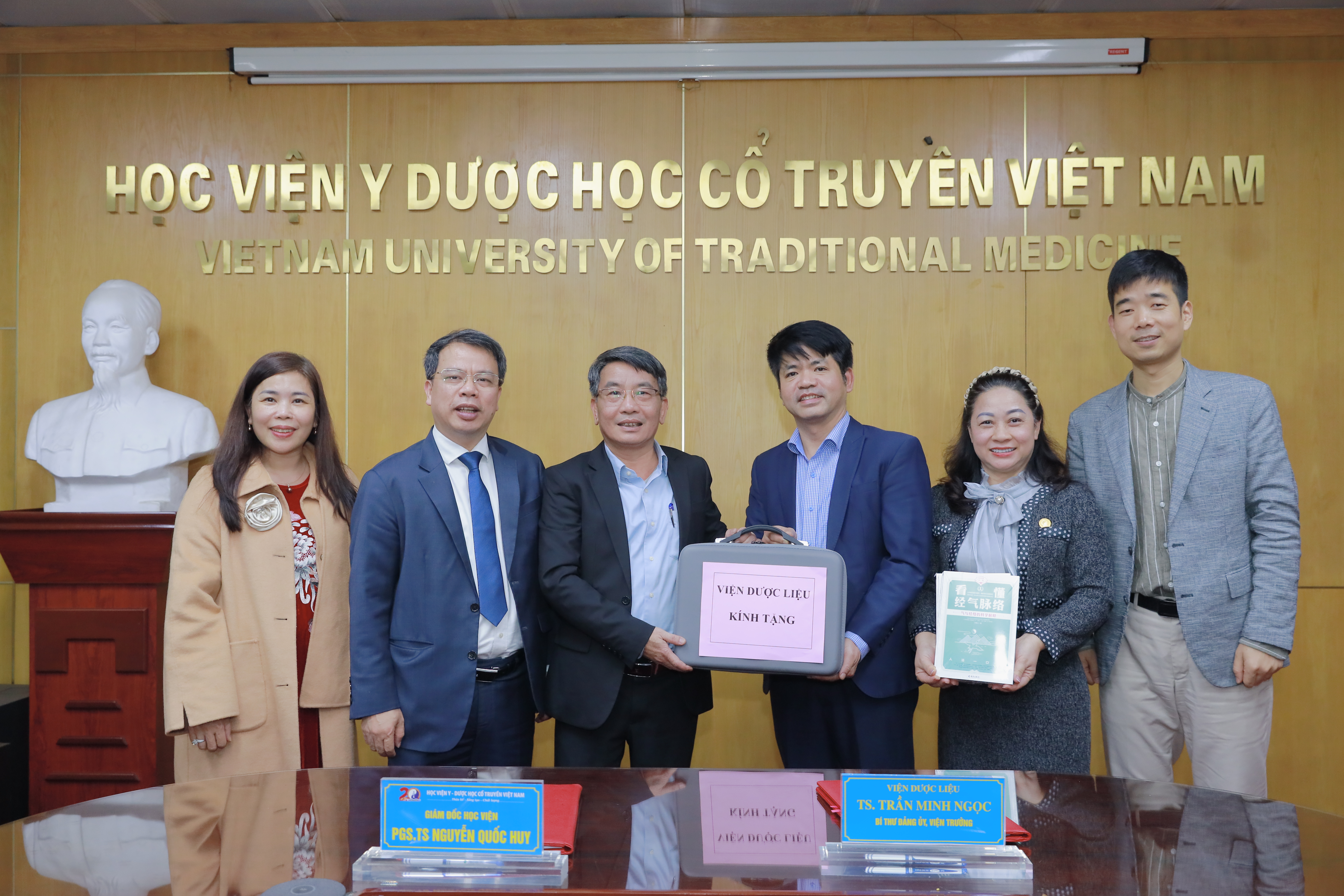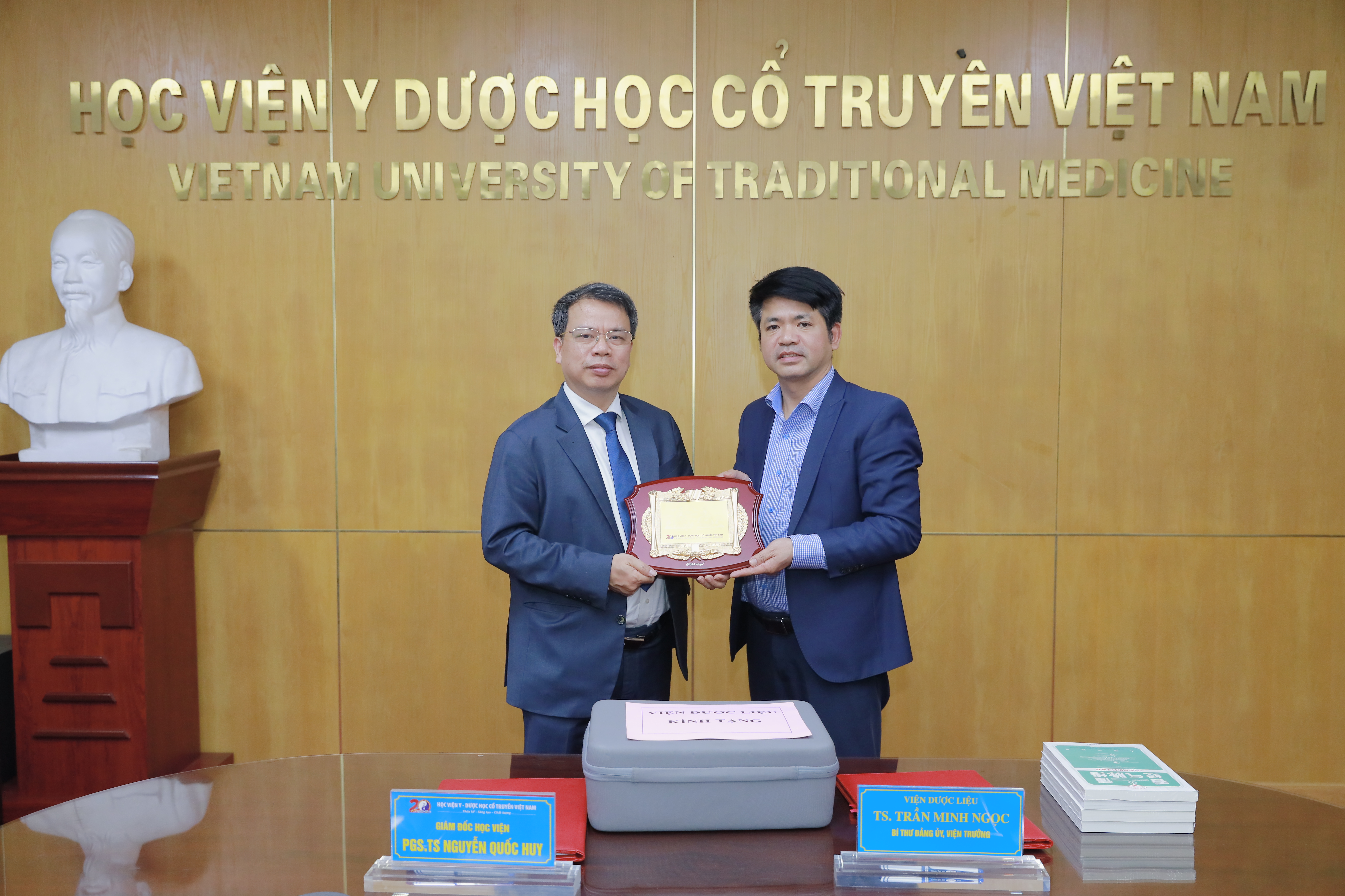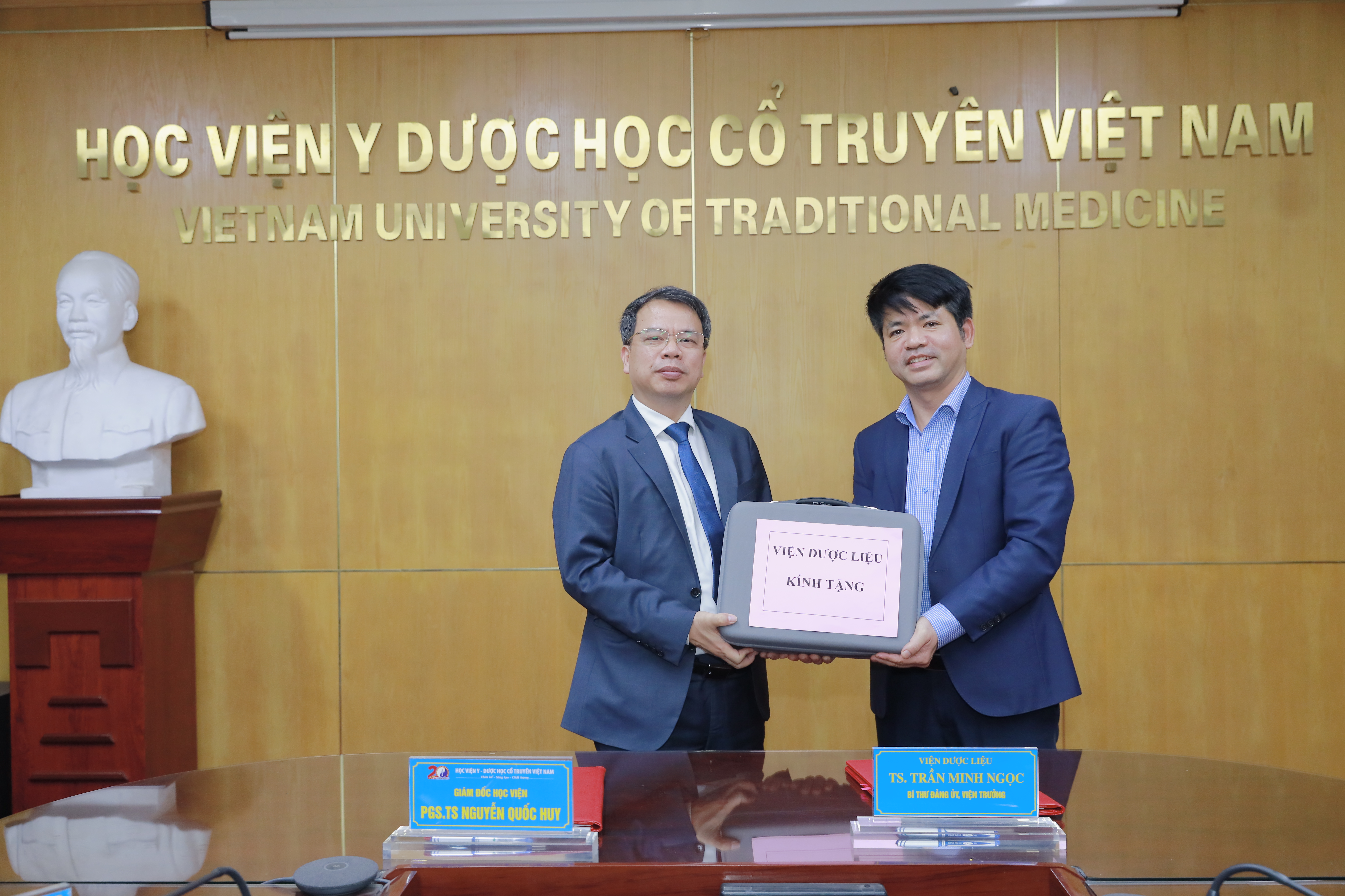 Buổi lễ có sự tham dự của TS. Trần Minh Ngọc - Viện trưởng Viện Dược liệu; PGS.TS. Nguyễn Quốc Huy - Giám đốc Học viện Y - Dược học cổ truyền Việt Nam cùng các đại diện lãnh đạo và cán bộ chủ chốt của hai bên.
