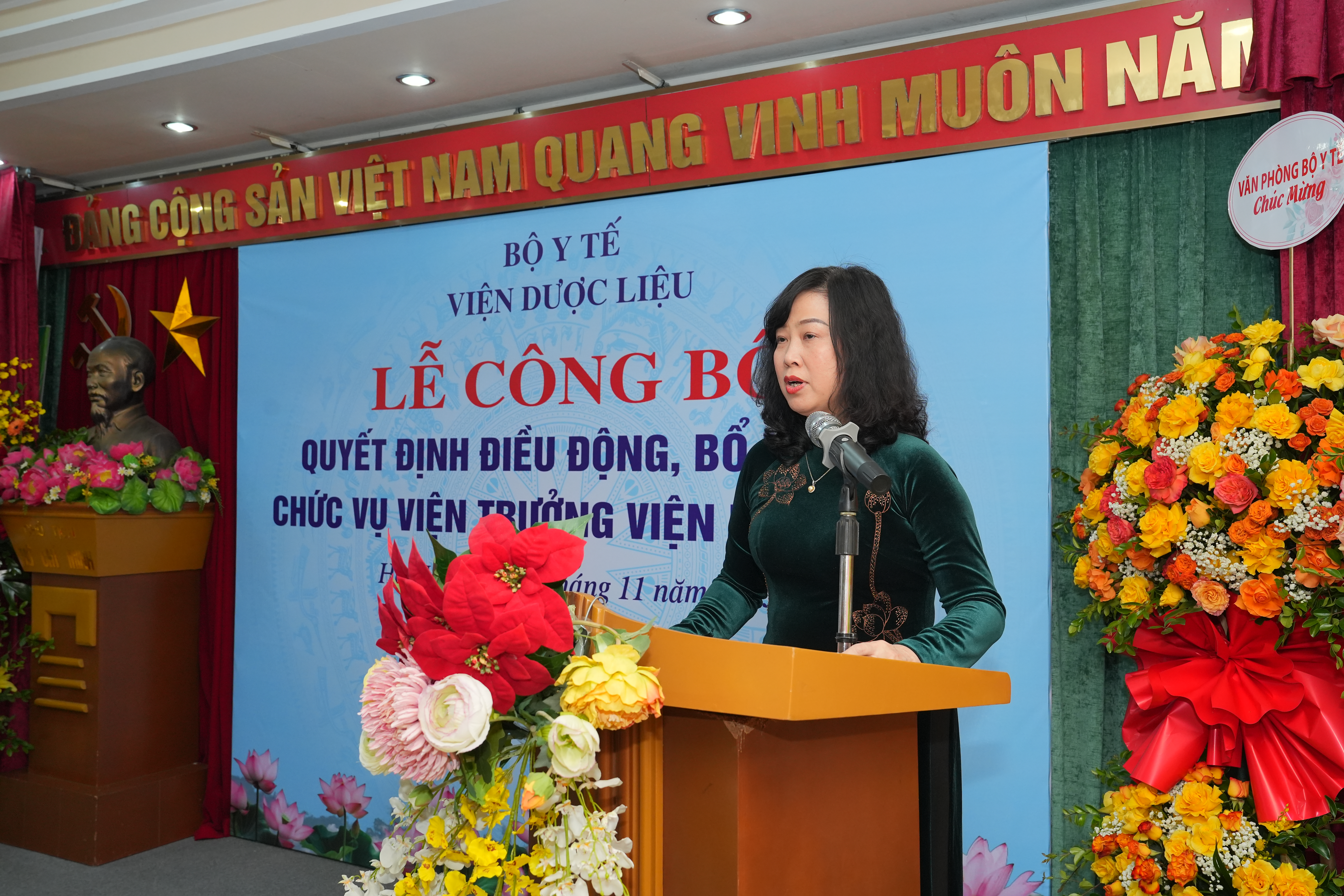 Tại buổi Lễ, thừa ủy quyền của Bộ trưởng Đào Hồng Lan, Vụ trưởng Vụ Tổ chức cán bộ (Bộ Y tế) Nguyễn Hồng Sơn đã công bố quyết định về công tác tổ chức cán bộ. Theo đó, tại Quyết định số 3411/QĐ-BYT, Bộ trưởng Bộ Y tế điều động, bổ nhiệm ông Trần Minh Ngọc - Tiến sĩ, Dược sĩ, Thạc sĩ kinh tế, Phó Cục trưởng Cục Quản lý Y Dược cổ truyền thuộc Bộ Y tế giữ chức Viện trưởng Viện Dược liệu trực thuộc Bộ Y tế. Thời gian giữ chức vụ là 5 năm kể từ ngày quyết định có hiệu lực. Quyết định có hiệu lực kể từ ngày 03/11/2025.
