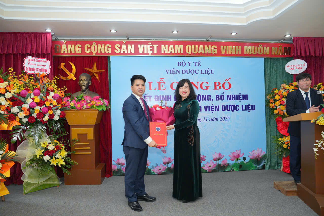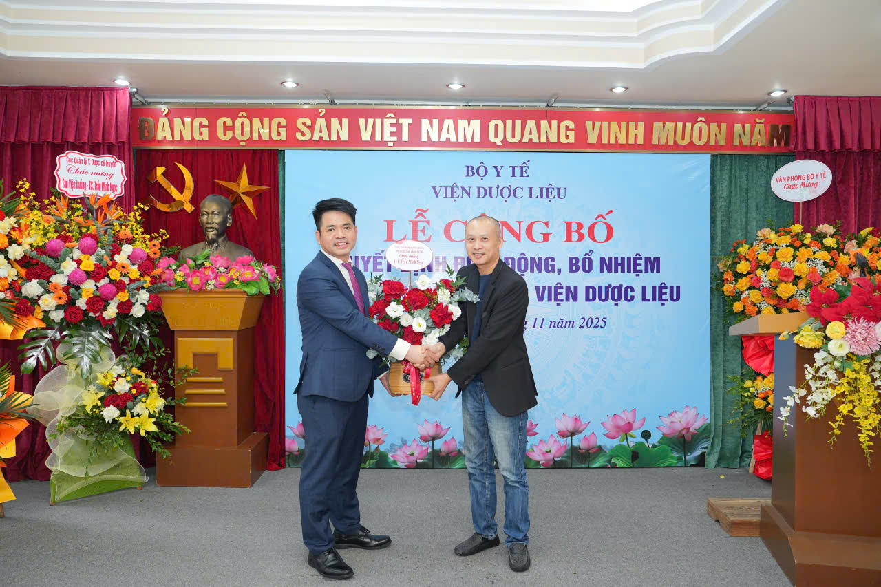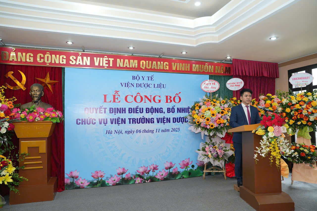 Sáng ngày 06/11/2025, Viện Dược liệu trang trọng tổ chức Lễ công bố và trao Quyết định điều động, bổ nhiệm chức vụ Viện trưởng đối với Tiến sĩ Trần Minh Ngọc.