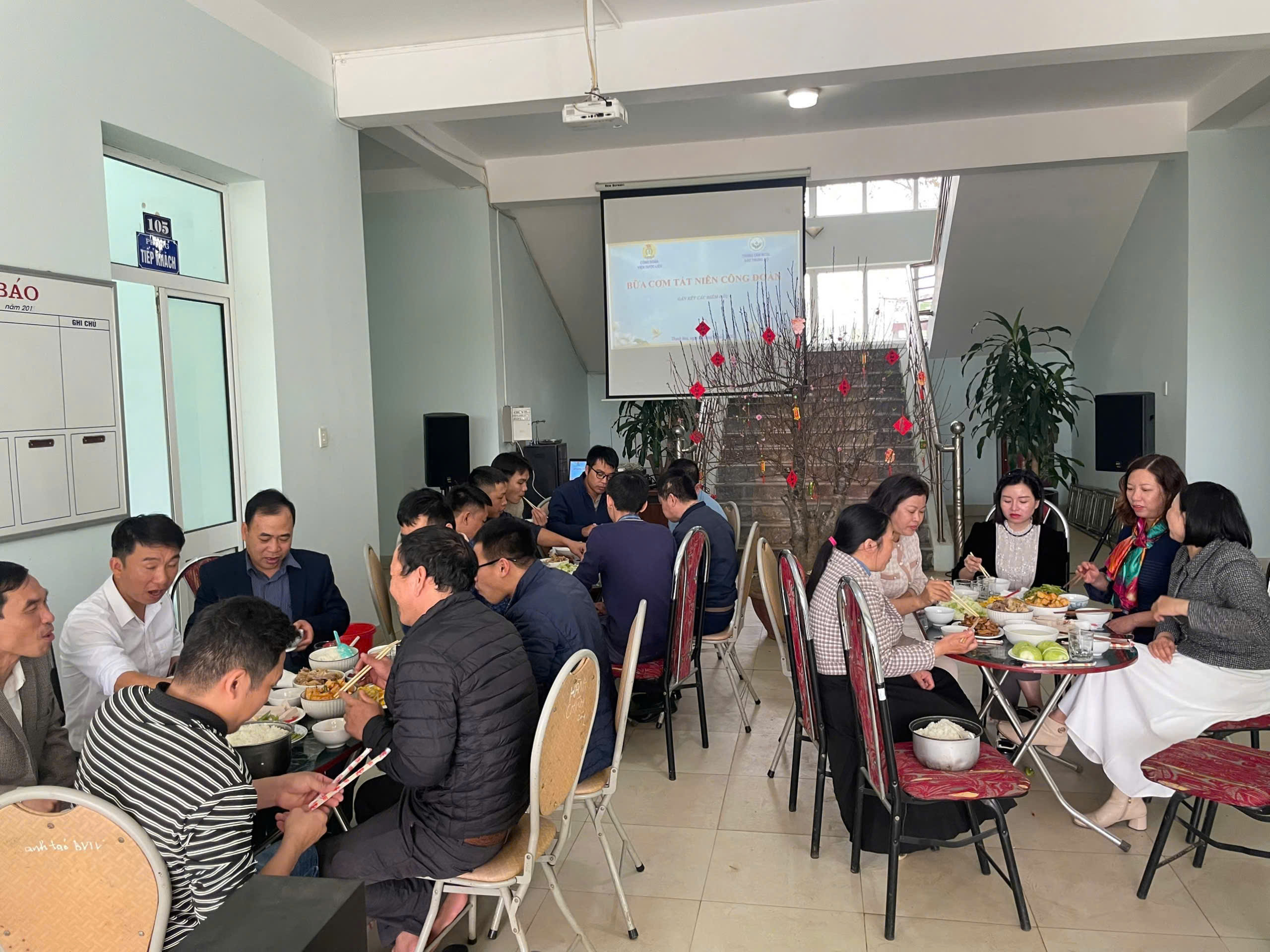 Bữa cơm nhận được sự quan tâm sâu sắc từ Đảng ủy, Ban Lãnh đạo Viện, các đồng chí lãnh đạo chủ chốt, BCH Công đoàn cơ sở, Đoàn Thanh niên với toàn bộ 240 đoàn viên và người lao động của Viện nhiệt tình hưởng ứng. Đồng chí PGS. TS. Phạm Thanh Huyền, Phó Bí thư Đảng ủy, Chủ tịch Công đoàn cơ sở Viện Dược liệu thay mặt Đảng ủy và Công đoàn đã cùng chia sẻ, tâm tình và giao lưu với các đồng chí đoàn viên, tạo bầu không khí bữa ăn thân tình và ấm áp. Các hoạt động chăm lo Tết năm nay gắn liền với hoạt động chào mừng Đại hội đại biểu toàn quốc lần thứ XIV của Đảng, Đại hội XIV Công đoàn Việt Nam nhiệm kỳ 2026-2031, cũng như Đại hội XV Công đoàn Y tế Việt Nam nhiệm kỳ 2025-2030. Qua đó, Tổ chức Công đoàn nói chung và Công đoàn cơ sở Viện nói riêng đều mong muốn tăng cường niềm tin của đoàn viên vào tổ chức, khơi dậy tinh thần hăng say, sáng tạo và cống hiến trong công tác phát triển dược liệu và chăm sóc sức khỏe nhân dân. Bữa cơm tất niên Công đoàn năm đầu tiên được tổ chức đã tạo không gian ấm cúng để các đồng chí đoàn viên và lãnh đạo cùng nhìn lại một năm làm việc, chia sẻ khó khăn, khích lệ tinh thần làm việc, phấn đấu đạt những thắng lợi mới, củng cố tinh thần đoàn kết gắn bó, tương thân, tương ái, đặc biệt kịp thời tri ân và động viên sự cống hiến thầm lặng của cán bộ, người lao động. Bữa cơm tất niên càng có ý nghĩa hơn khi Công đoàn cấp trên đã tạo điều kiện hỗ trợ triển khai công tác trao tặng quà Tết cho đoàn viên, 25 đồng chí có hoàn cảnh vượt khó đã được trao tặng quà ngay trong Bữa tất niên tại Viện và các điểm cầu.